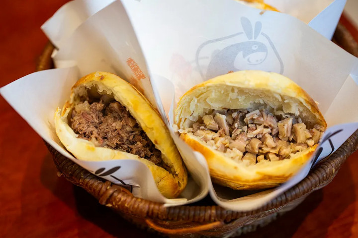 驴肉火烧(左)、驴板肠火烧(右) 图/视觉中国